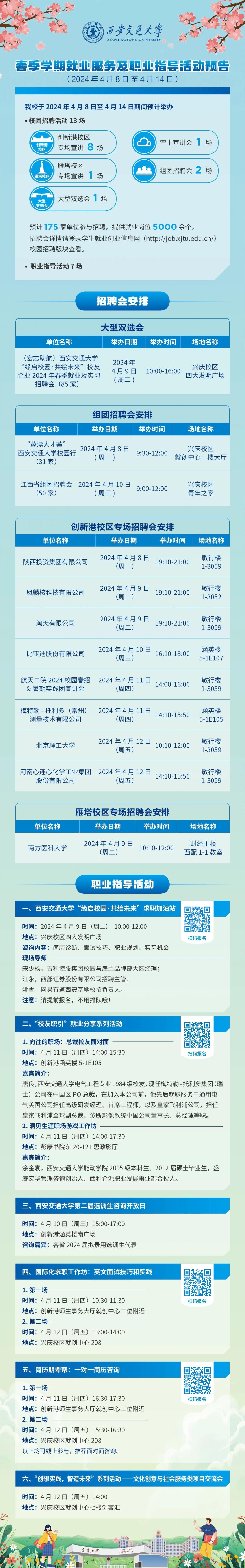 西安交通大学春季学期就业服务及职业指导活动预告(2024年4月8日至4月14日)