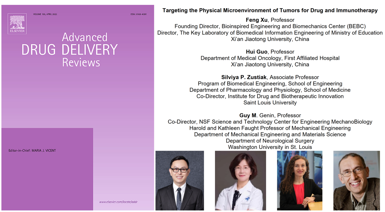 近日,西安交大BEBC徐峰教授联合西安交大一附院肿瘤内科郭卉教授、美国圣路易斯大学Silviya P. Zustiak教授和西安交大BEBC/圣路易斯华盛顿大学美国国家发明家科学院院士Guy M. Genin教授,作为专刊编辑在国际权威综述期刊《Advanced Drug Delivery Reviews》(IF = 17.873)牵头组织了一期主题为“肿瘤免疫治疗与物理微环境”(Targeting the Physical Microenvironment of Tumors for Drug and Immunotherapy)的专刊,并诚邀海内外多位知名教授为本期专刊撰写了高质量综述。