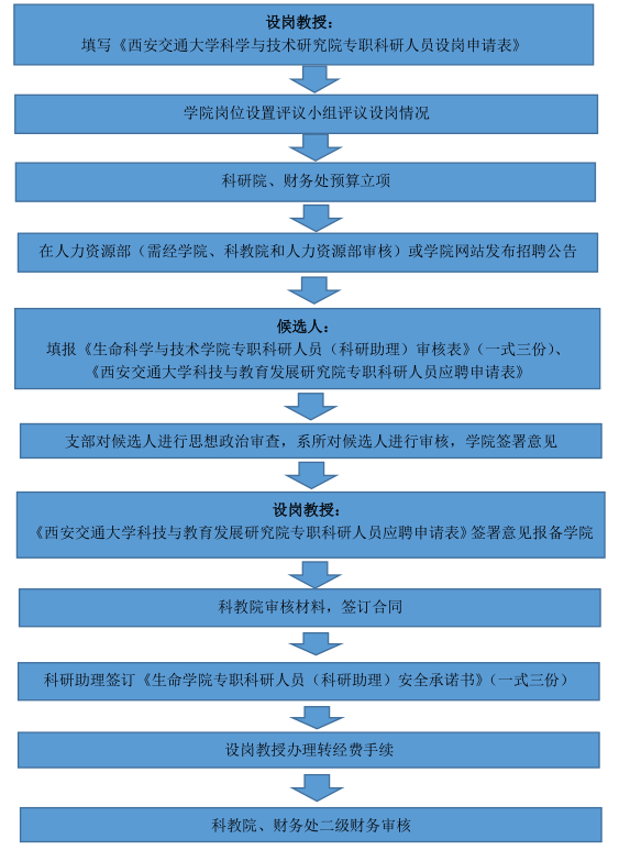 betway必威官方网站专职科研人员(科研助理)聘用流程