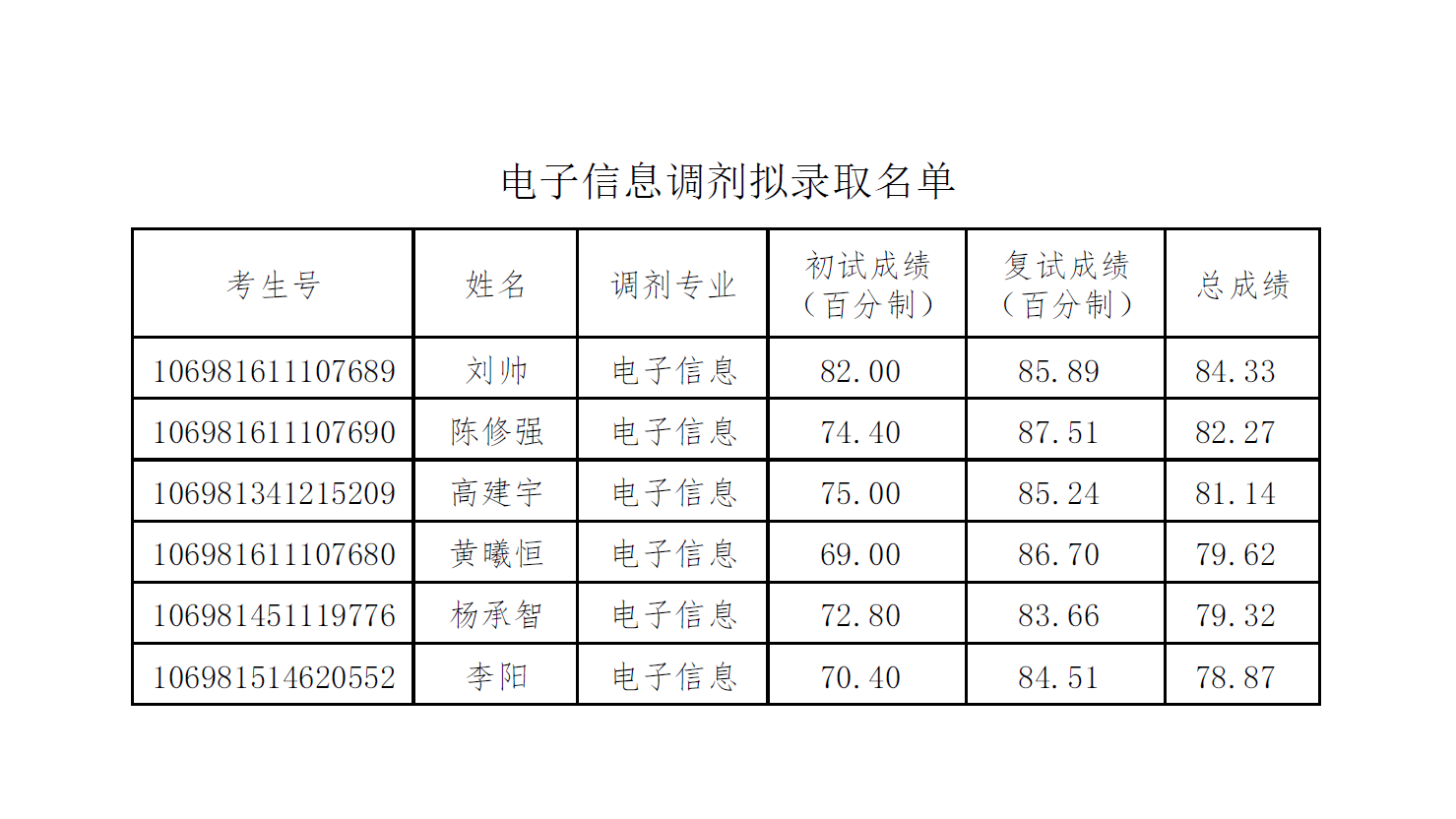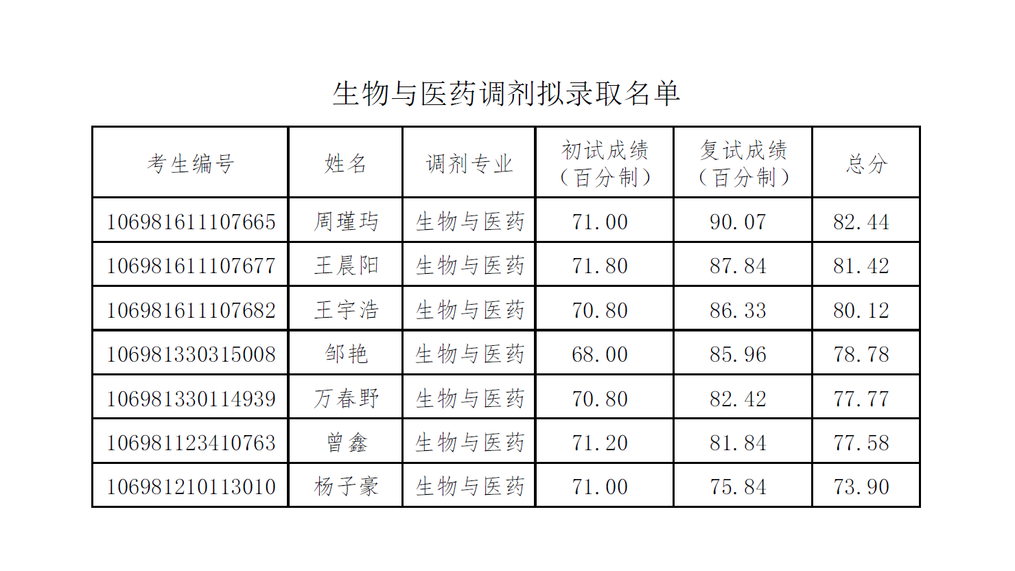 2021年我院硕士研究生入学考试专业学位调剂拟录取名单公布如下,公示期为2021年4月6日至2021年4月19日,如有异议请以实名方式向生命学院党委反馈。