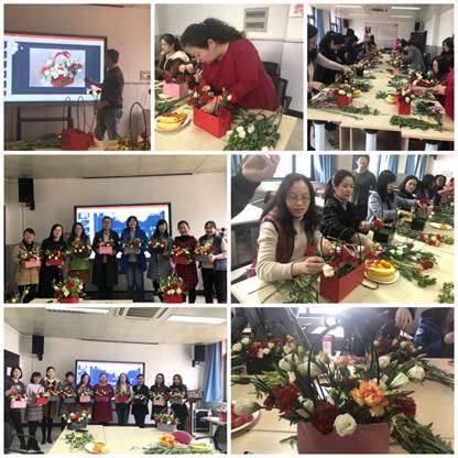 3月8日下午,院工会又在学院308会议室举办了一场别开生面的“与鲜花相约 为生命增彩”主题花艺活动。活动邀请美嘉花艺的花艺师为女教师们讲授花艺的基本知识,包括花材的选择、颜色的搭配等等,并现场进行了插花技巧示范。到了老师们亲自动手的实践环节,大家迫不及待地动手精心修剪茎叶,搭配花色,打理花朵,尽情享受着插花的乐趣,现场气氛和谐而温馨。经过一番精心制作,大家都完成了自己的作品。
