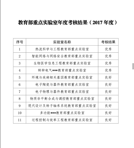 此次考核包括全校11个教育部重点实验室,其中4个实验室获得优秀,其余7个实验室获得良好。