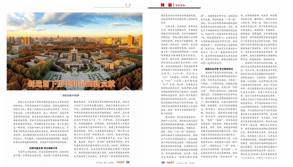 创造留下历史印记的新贡献,是西安交大实现崇高历史使命的重要手段。近代以来,救亡图存成为中华民族和中国人民迫在眉睫的历史使命。争取民族独立、人民解放,实现国家富强、人民富裕,成为中国人民必须完成的两大历史任务。在这一历史进程中,我们党紧紧依靠人民完成了新民主主义革命、完成了社会主义革命、进行了改革开放新的伟大革命,从根本上改变了中国人民和中华民族的前途命运,不可逆转地结束了近代以后中国内忧外患、积贫积弱的悲惨境遇,不可逆转地开启了当代中国沿着社会主义道路走向现代化、走向伟大复兴的历史进军。与之相应,在历经百余年的发展历程中,西安交大始终坚守一条红线,那就是从社会变革、国家发展和民族创新的实际需要出发,推进科学技术进步,传承先进文化,培养造就一流人才。从率先兴办中国新式教育,到创建中国高等工程教育,再到开拓中国西部最高水平的大学教育,在大西北建设具有理工特色的综合性研究型世界一流大学,西安交大122年间一系列重要的时间节点鲜明如昨,折射出一代代交大人在校园里留下的奋斗足迹和在各自领域所取得的非凡成就,这正是西安交大不断创造留下历史印记新贡献的真实写照。我们不仅感受到前辈先贤在波谲云诡的时代变迁中励精图治、传承薪火的艰辛与不易,而且感动于交大人对事业的执著、热爱与奉献,更能体味出西安交大中兴民族的使命情怀、严谨精致的卓越追求和开拓进取的创新精神,留给后人深深的启迪和教益。
