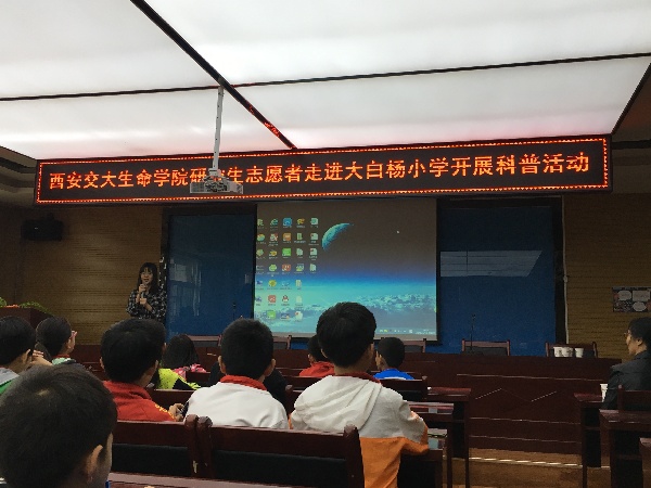 西安新闻网讯(文/图 西安日报记者 拓玲)20日,西安交大生命学院硕7109党支部志愿者,走进我市大白杨小学,开展了一场别开生面的“生物医学知识进校园”科普活动。