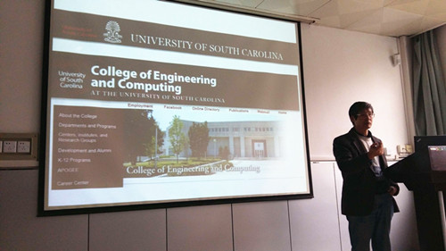 应仿生工程与生物力学中心主任徐峰教授的邀请,美国南卡罗来纳大学助理教授王归仁博士于2016年1月6日来到仿生工程与生物力学中心进行访问,并作了题为“Ultrahigh spatiotemporal Resolution Optical Measurement and Lab-on-a-Chip Applications”的学术报告。报告介绍了一种新型的微通道中流速测试装置以及远场纳米光学显微镜系统,以及他们最新开发的一种基于介电泳的癌细胞微流体分拣装置。许多对此感兴趣的同学向王教授提出了自己的问题和看法。希望未来双方会有更多的交流与合作。