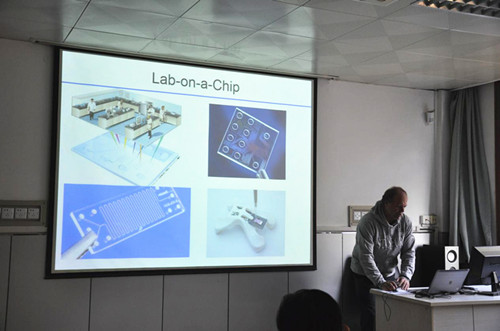 2015年11月2日,应生命学院徐峰教授邀请,捷克技术大学Pavel Neuzil教授来我院交流并在生命学院308报告厅作了题为“Microfluidic (lab-on-a-chip) for Diagnostics”的学术报告。
