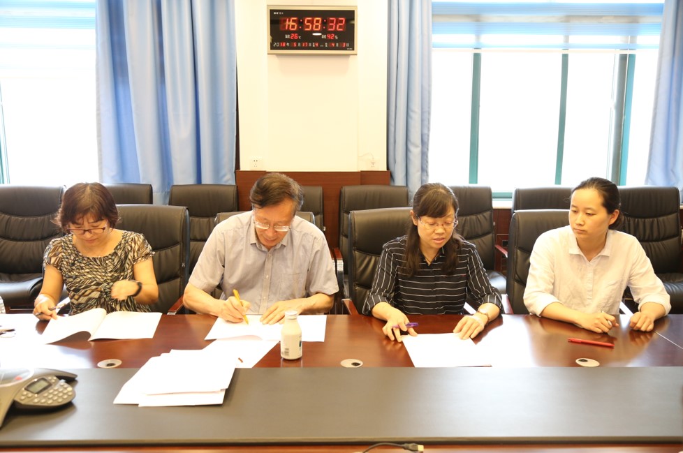 刘茹书记带领与会人员共同学习了2018年校园治安综合治理目标责任书,与刘健康院长共同和各单位负责人和安全员签订2018年综合治理目标责任书。