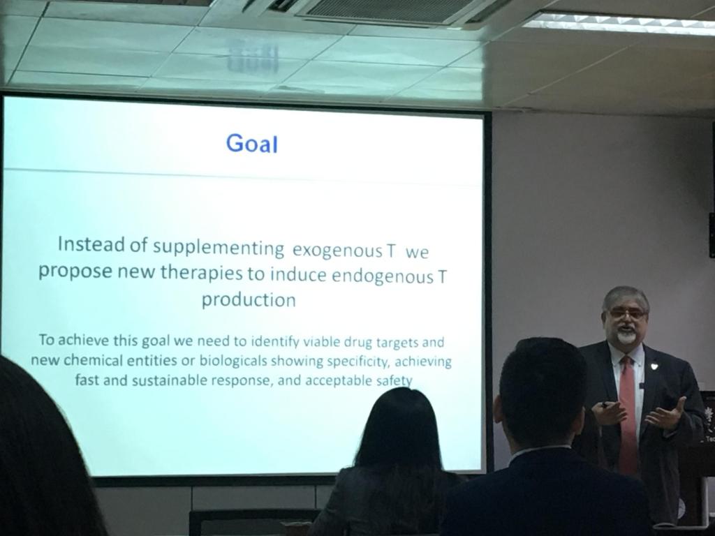 研讨会后,Dr. Vassilios Papadopoulos为我院师生作了“New treatment approaches for male hypogonadism”的学术报告。介绍了研究团队从靶向药物到细胞疗法的一系列治疗睾酮水平不足的学术发现和应用前景。