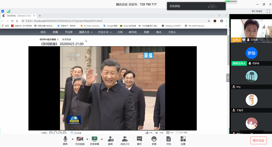 参会人员共同观看了4月23日《新闻联播》对习近平总书记视察西安交通大学的报道,并认真学习了习近平总书记莅校视察时的讲话全文。
