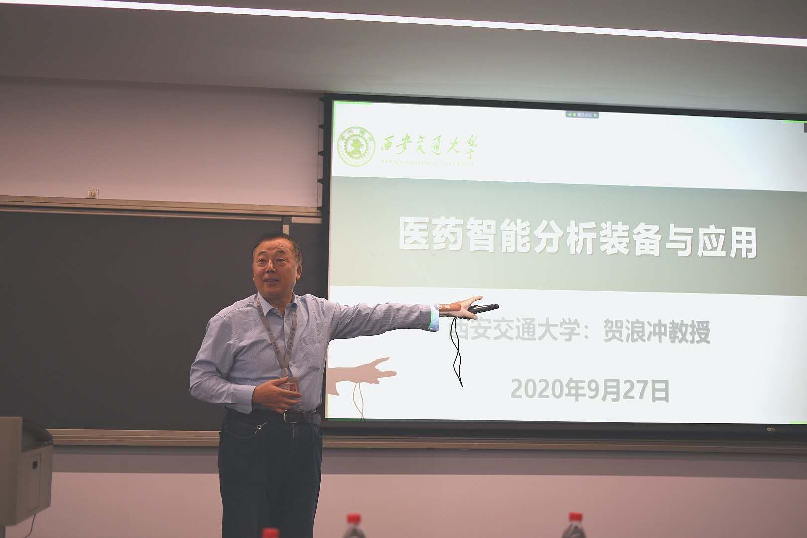 西安交通大学医学部副主任贺浪冲教授针对其专业领域-医药智能分析装备及应用与同学们进行交流,提出大学研究所应该主动承担“最后一公里”并强调了学科交叉的重要性。