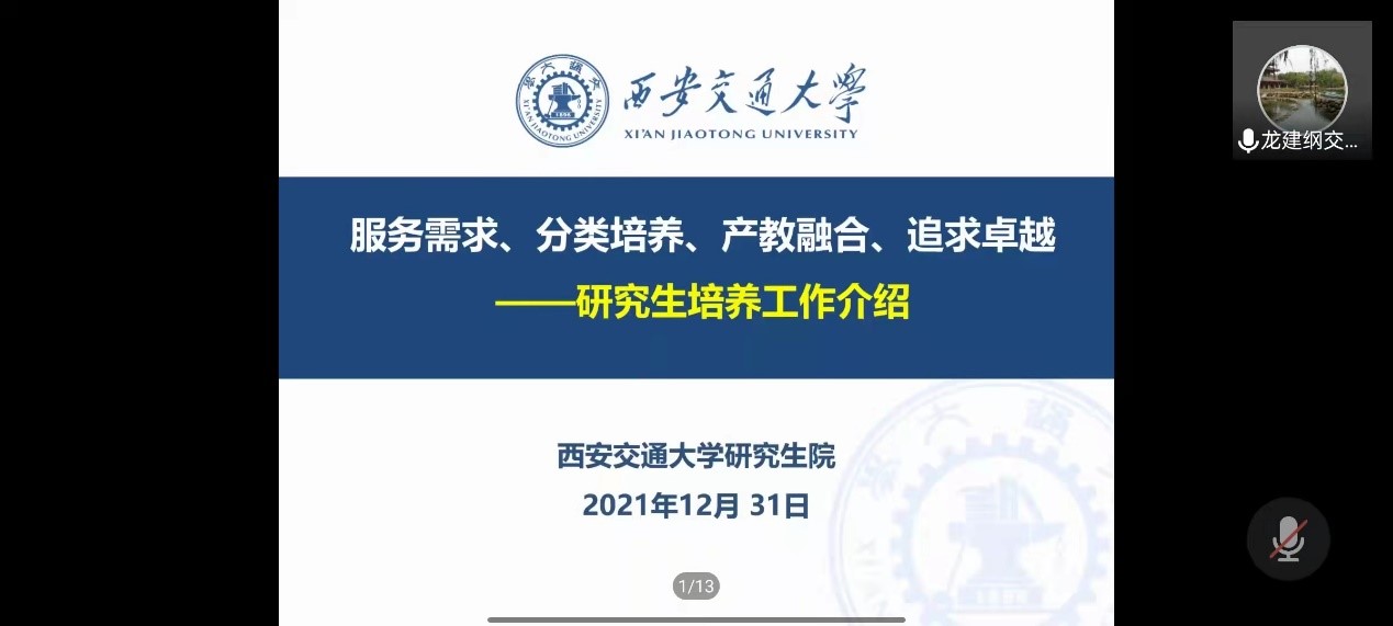 龙建纲教授围绕服务需求、分类培养、产教融合、追求卓越介绍研究生培养相关工作,就培养模式、培养过程、课程与教材、学科竞赛、国际化培养、访问学者等多个方面的政策进行相关宣讲,对当前疫情情况下如何开展研究生课程教学及考试的相关安排进行详细说明。