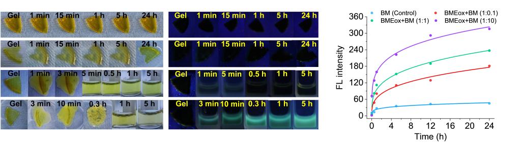 2.水凝胶的合成、重塑以及降解的荧光增强可视化跟踪