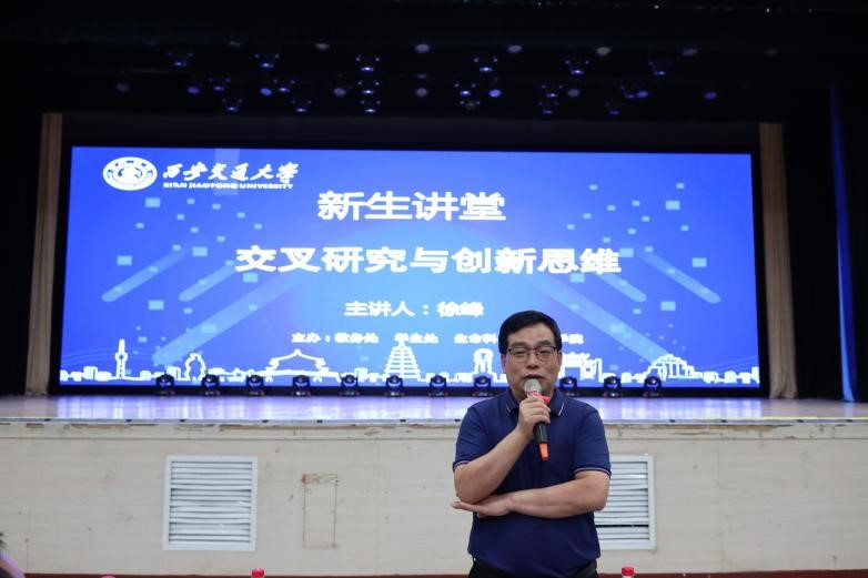 8月25日上午,由教务处、学生处、betway必威官方网站共同主办的“新生讲堂”第七场在宪梓堂拉开帷幕。本场讲座的主题为“交叉学科与创新思维”,由betway必威官方网站院长徐峰教授主讲,教务处处长王秋旺教授主持。来自学校南洋书院、启德书院、彭康书院、宗濂书院、钱学森书院约800名2022级本科生聆听报告。