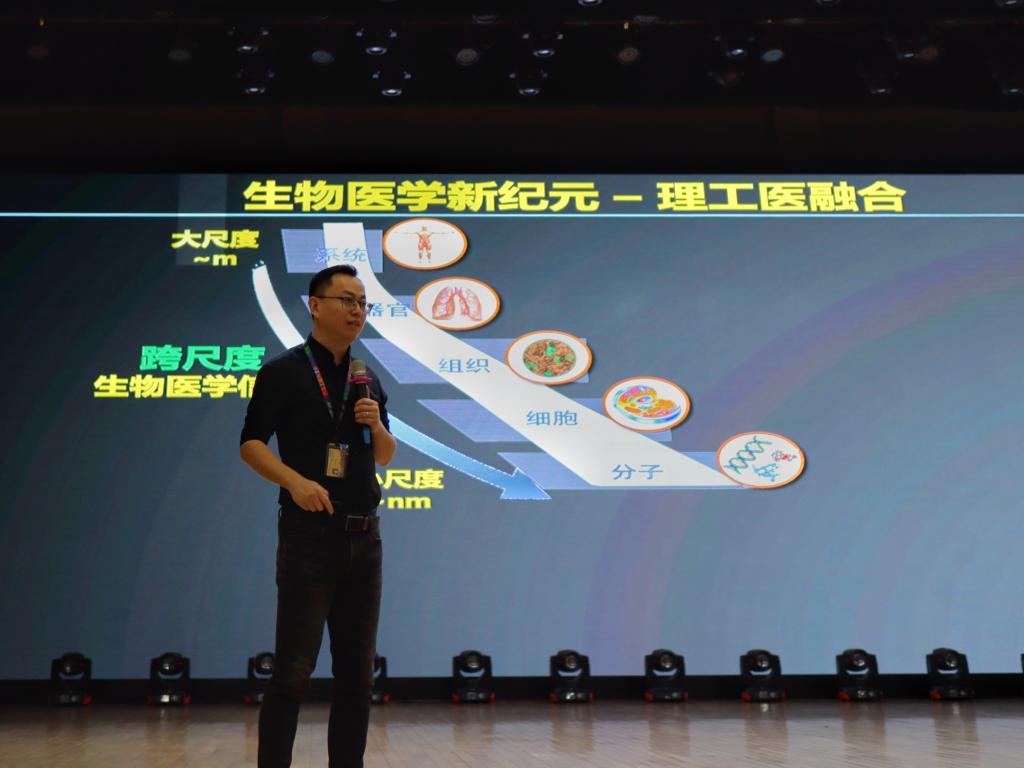 让生命医学交叉互融去放飞梦想,让我们用前沿科技守护生命健康!徐峰诙谐的语言、激情的演讲,赢得了现场同学们的阵阵掌声。报告结束后同学们踊跃提问,徐峰教授一一给予了详细的回答。
