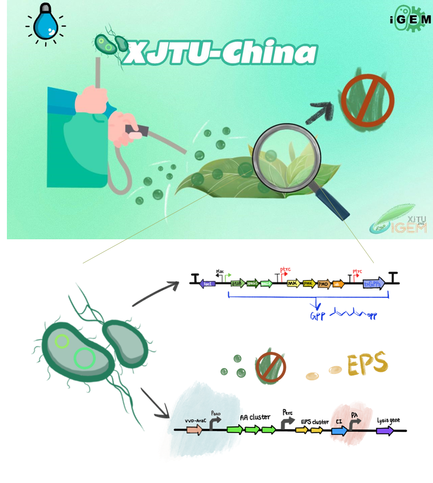 本次比赛吸引了来自全球的324支队伍参与角逐。2022年西安交大参赛团队继续秉承以学生创造力为主的自主选题、合作推进的项目模式,以化生试验班001班和生物强基001班学生为主体,吸收了来自药学、医学、人工智能、工业设计等各专业的优秀学子,组成了一支多学科交叉团队。团队成员以解决土壤除草剂残留、改善土质为目标,用合成生物学思路设计和构建了一种多功能工程菌粉,实现了天然除草剂和胞外多糖的“光控合成+温控释放”,这种“智能缓释”的生物肥料能防止除草剂过量使用,同时胞外多糖发挥改善土质的功效,为土壤残留和土质改善提供了一种绿色安全的解决方案。