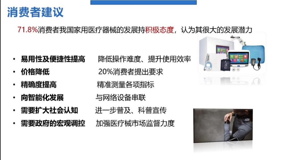 本次调研对不同群体都有借鉴意义:家用医疗器械企业如何降低医疗器械的价格、提高家用医疗器械的便携性是提高企业效益的两大重点;科研人员可关注康复类、中西结合类医疗器械领域前沿问题;后疫情时代,创业者可关注血氧监测,慢呼吸系统病监测治疗等热点。
