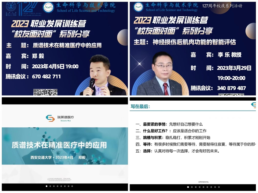 3月29日-4月12日,生命学院推出校庆系列活动——“校友面对面”主题讲座,邀请1996级李乐、1999级郑毅、2001级刘家家、2004级曾子霁、2006级赵明浦等校友,围绕行业发展、学生成长、职业规划等方面开展专题分享,共话母校助力下的成长。