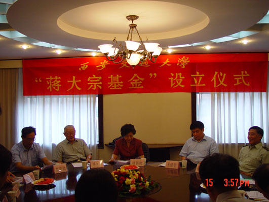 2003年7月15日,西安交通大学南洋大酒店第3会议室,以我国生物医学工程专业创始人蒋大宗先生命名的基金设立仪式在这里隆重举行。参加大会的有蒋大宗先生、项新时副书记、王建华副校长及首届基金管理委员会的成员。