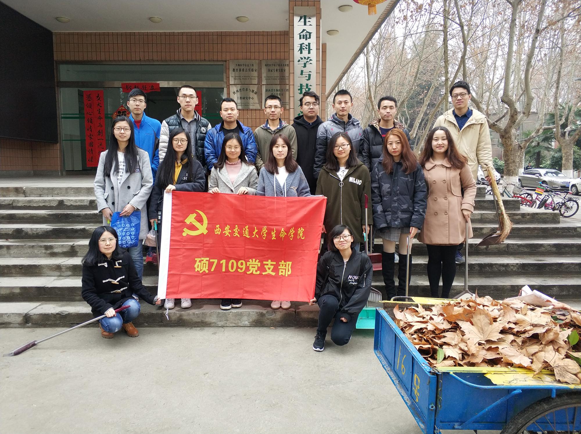 为培育交大学子高扬“四面旗帜”的意识,弘扬“奉献、友爱、互助、进步”的志愿精神,推动学生志愿服务活动常态化,3月5日,生命学院组织硕7109党支部开展学雷锋活动,帮助打扫校园与学院公共区域卫生,硕7109党支部十余名党员志愿者参加。