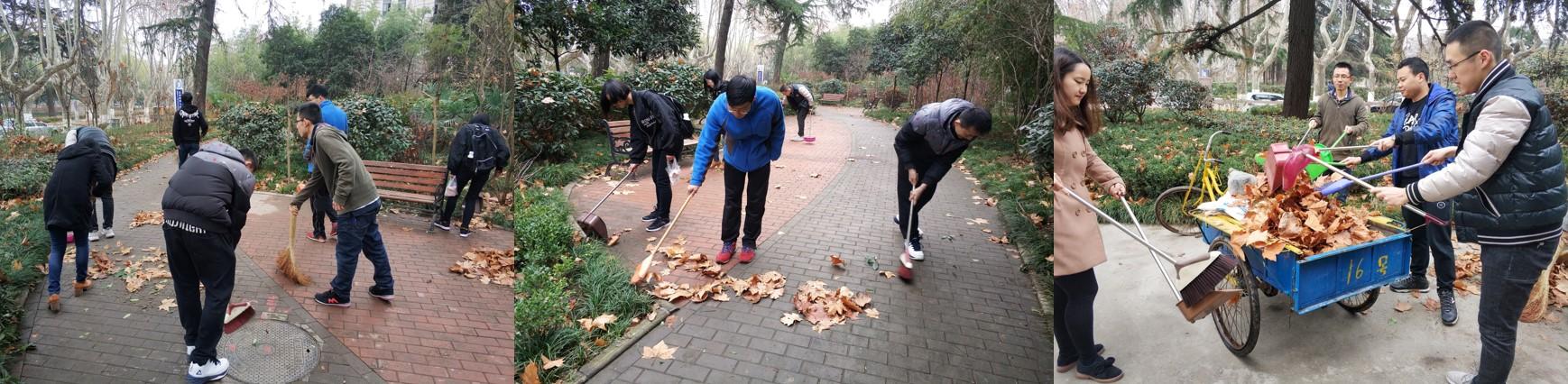 活动现场的打扫工作在支部书记的引领下,有条不紊地进行。学生党员们利用自带的抹布、笤帚、簸箕等劳动工具,清扫了学院各楼层的走廊、楼梯,并擦洗了楼梯扶手,帮助保洁阿姨清理了楼层垃圾桶的实验室垃圾。接着,同学们清扫了学院北边的花园,东西两侧的楼梯与路面,使得原本布满落叶和其他垃圾残渣的区域变得干净整洁。雨后落叶沾水,难以清理,但同学们耐心积极地打扫,最终圆满完成任务。活动的最后,两名同学将清扫出的垃圾用三轮车运送到了学校的垃圾集中处理场。活动结束之后,同志们纷纷表示,天气很冷,但是内心却十分火热。