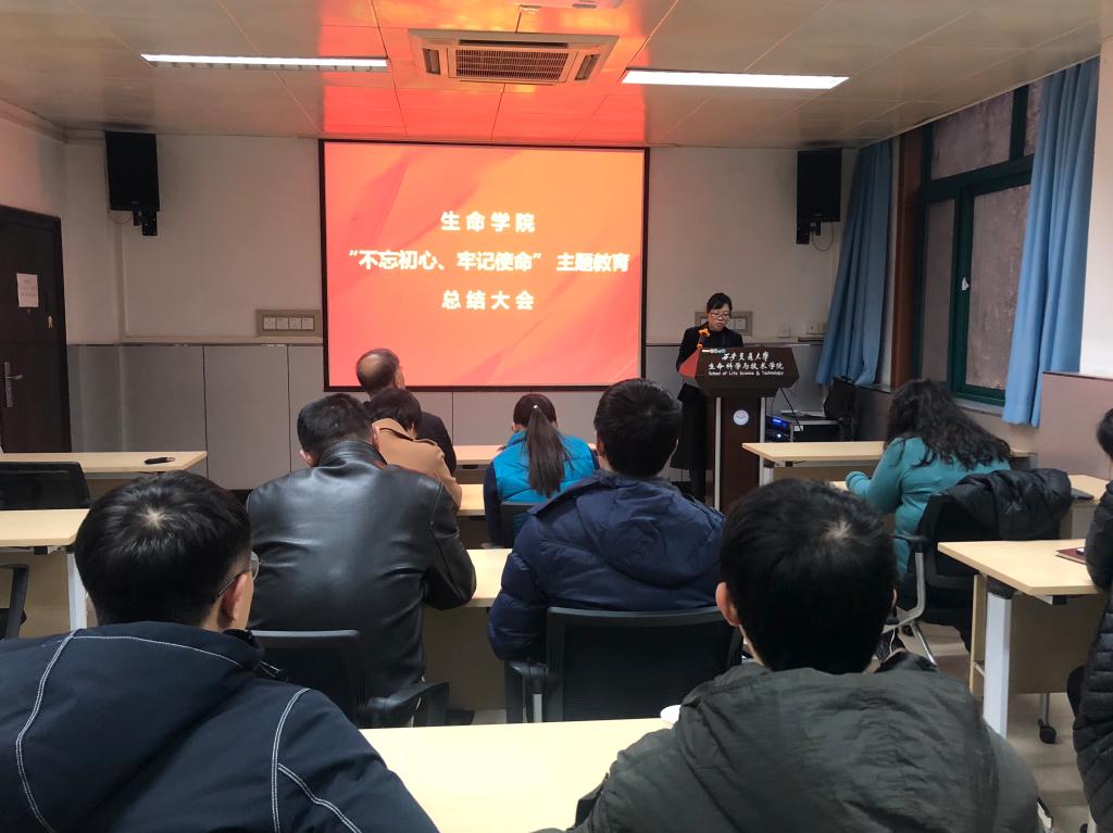 1月15日,生命学院召开“不忘初心,牢记使命”主题教育总结大会,学院领导班子成员、分党委委员、各系所负责人、党支部书记参会,学校主题教育第九指导组组长马胜利出席并讲话。