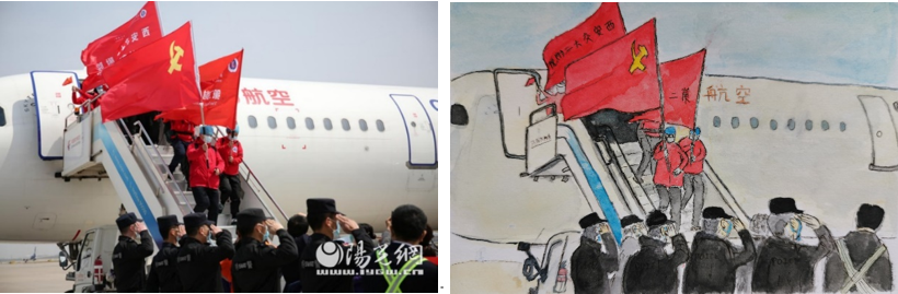 最后,为表达对张勇医生以及抗疫英雄们的感激之情,支部党员郭肖玉同志绘制了手绘作品赠送给战疫英雄,致敬张勇医生为代表的奔赴疫情前线的医务人员,为他们点赞。