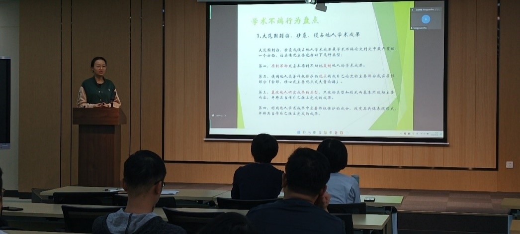 学生党员刘畅分享题为“坚守学术道德,弘扬学术诚信”的微党课。刘畅同志介绍了学术不端行为的内涵,列举数据造假、论文雷同和买卖数据等学术不端的具体事例,提醒师生党员在日常学术活动中严格要求自己,保持严谨的学术底线,坚决杜绝学术不端行为的发生。