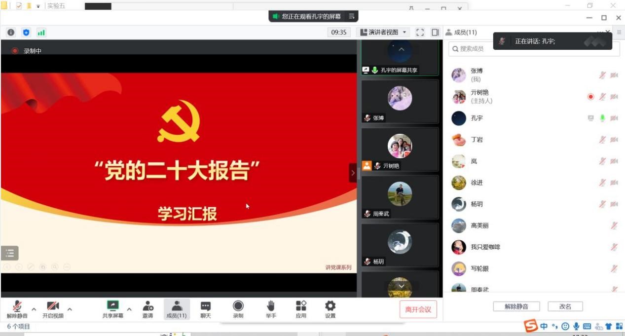 10月28日,生命学院第一支部召开二十大精神专题学习会,会议采取线上腾讯会议的方式进行,党支部书记孔宇教授主持,学院分党委委员徐进教授列席指导,支部全体党员参加。