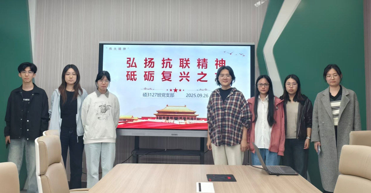 硕4127班党支部许鹏同志带领大家学习习近平总书记在纪念中国人民抗日战争暨世界反法西斯战争胜利80周年大会上的重要讲话。王启航同志带领全体党员深入学习了东北抗联精神的丰富内涵与时代价值。韩欣悦同志分享了李强在北京调研生物医药产业发展时的论述。