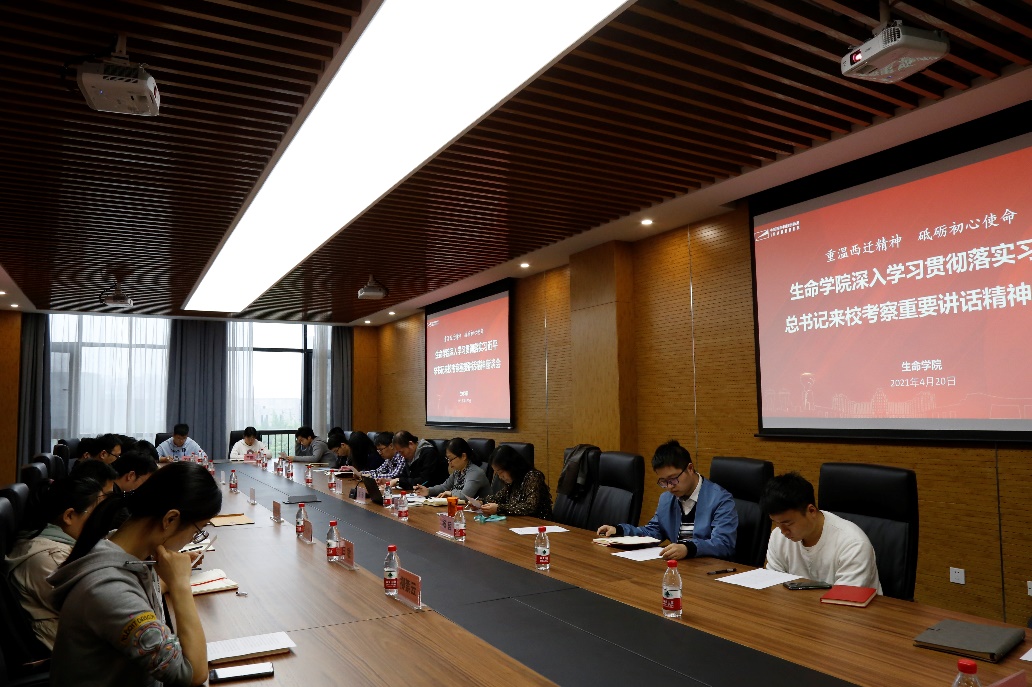 2020年4月22日,习近平总书记来校考察,对交大西迁64年来的成就给予充分肯定,对西迁精神给予高度赞扬。2021年4月21日,习近平总书记来校考察一周年之际,生命学院在创新港召开深入学习贯彻落实习近平总书记来校考察重要讲话精神座谈会,重温西迁精神,砥砺初心使命。会议由分党委书记刘茹主持,学院师生代表参加座谈。