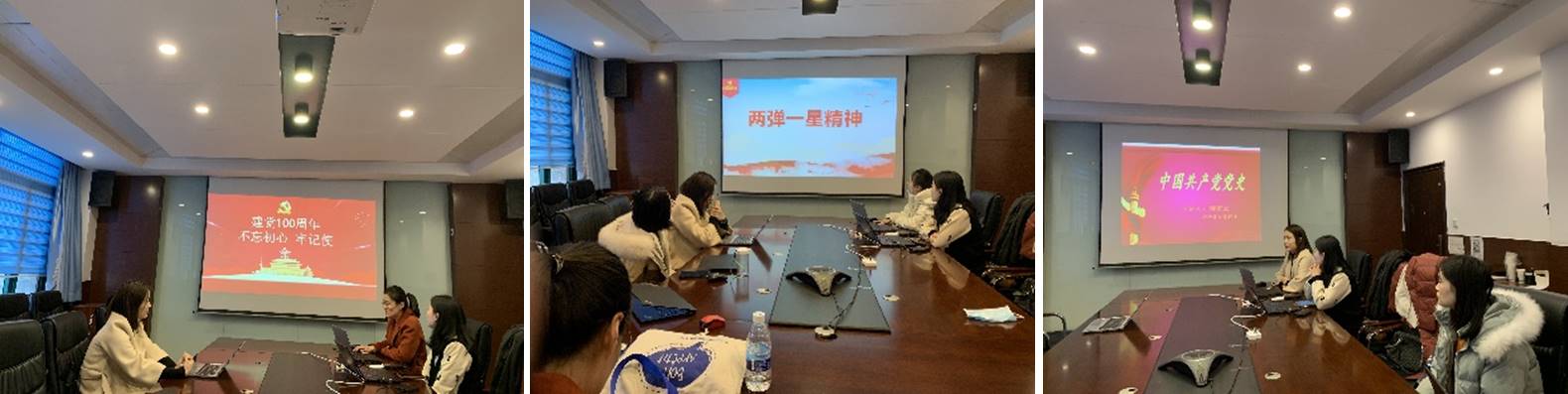 时乐带领与会人员一起回顾中国共产党从诞生至今,走过100年的光辉历程。中国共产党人的初心和使命,就是为中国人民谋幸福,为中华民族谋复兴。我们要认真回顾走过的路,不能忘记来时的路,继续走好前行的路。韩戍君分享了“两弹一星”精神。在“两弹一星”事业奋斗中,广大研制工作者培育和发扬了热爱祖国、无私奉献,自力更生、艰苦奋斗,大力协同、勇于登攀的精神。我们在日常工作生活中,要时刻牢记“两弹一星”精神,将这种精神发扬光大,应用于实际生活中,刻苦奋斗勇于登攀。柳絮云回顾了建党百年历史,号召党员学党史、知党史,才能坚定信念、明确方向,为民族伟大复兴做出积极贡献。谭丹分享了习近平总书记关于“中国梦”的重要理论深刻内涵,提出要将个人梦想融入伟大中国梦,坚定信念,开拓创新,实事求是,用“青年梦”托起“中国梦”。